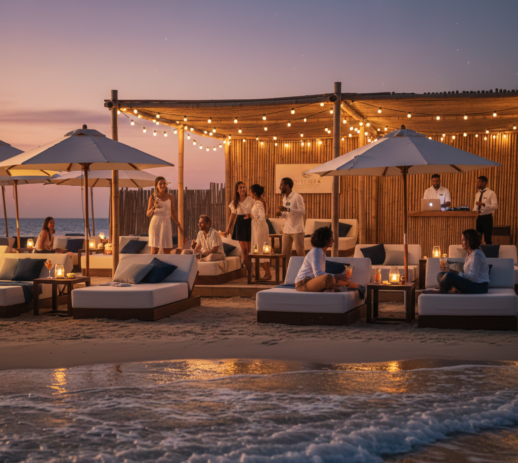 Experience the heartbeat of Eleko. Our Beach Club combines the rhythmic sounds of the ocean with premium service, featuring comfortable sunbeds and a vibrant atmosphere for the modern traveler.oast look inviting and premium.